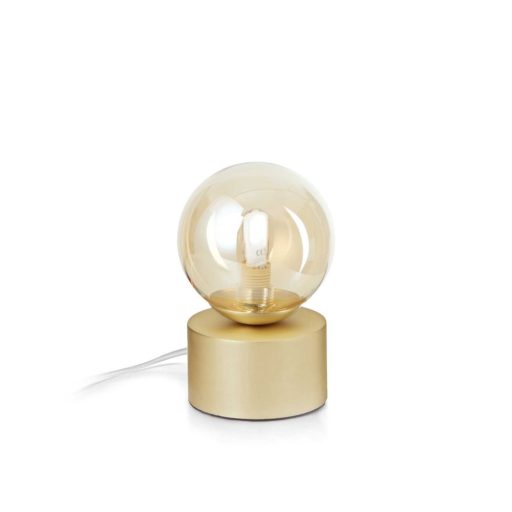 Sárgaréz színű fém vázas éjjeli lámpa borostyán üveg búrával, G9-es foglalattal. A lámpa egyéb tulajdonságai: vezetékre szerelt kapcsoló. 4W 3000K színhőmérsékletű G9-es LED fényforrással szállítjuk.