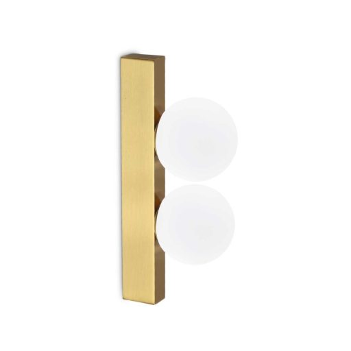 Sárgaréz színű fém vázas fali lámpa fehér színű acryl búrával, meleg fehér színhőmérsékletű beépített LED fényforrással.