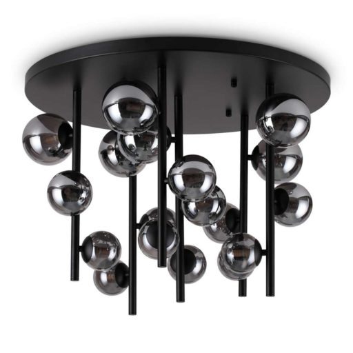Fekete színű fém vázas mennyezeti lámpa füstszínű üveg búrával, G9-es foglalattal.