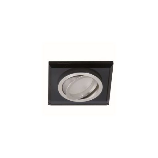 Rendkívül dekoratív megjelenésű mennyezetbe építhető billenthető lámpa fekete színű üveg és fém anyagokból. Maga a spot keret nem tartalmaz foglalatot, külön kell hozzá GU10-es foglalatot vásárolni.