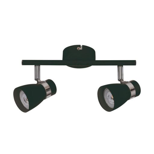 Fekete színre festett acél spot lámpa króm dekorral, tetszőlegesen állítható fejekkel.