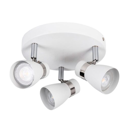 Fehér színre festett acél spot lámpa króm dekorral, tetszőlegesen állítható fejekkel.