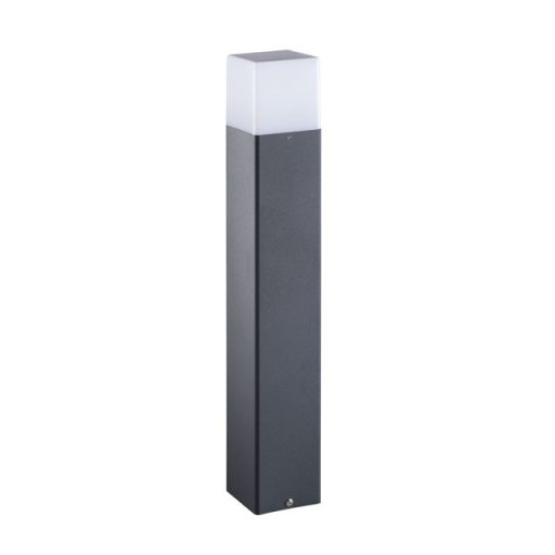 Sötét szürke színű alumínium ötvözet kültéri álló lámpa fehér színű műanyag búrával, IP44-es védelemmel.