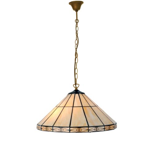 Antik barna színű fém vázas függeszték 41cm átmérőjű, bézs árnyalatú Tiffany üveg búrával.