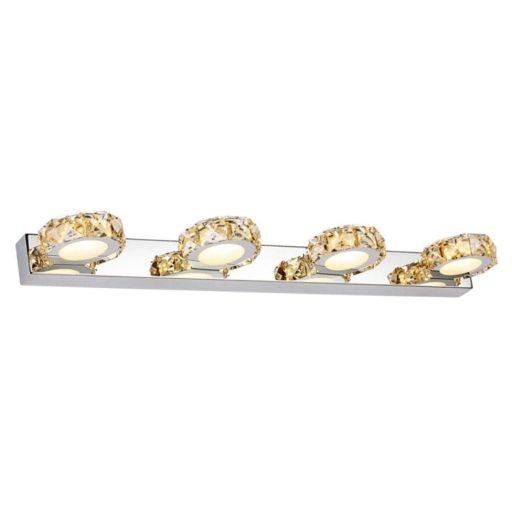 Króm színű fém vázas fali lámpa arany színű, üveg kristály dekoros búrával, természetes fehér színhőmérsékletű beépített LED fényforrással.