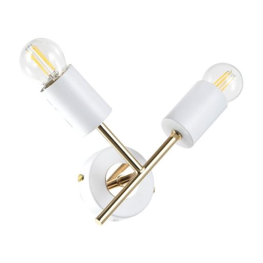 Fehér és arany színű fém, búra nélküli fali lámpa E27-es foglalattal. A lámpa dekor fényforrással mutat legjobban, ami nem tartozék.