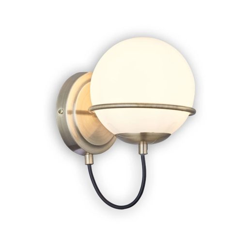 Antik bronz színű fém vázas fali lámpa fehér színű üveggömb búrával, E14-es foglalattal.