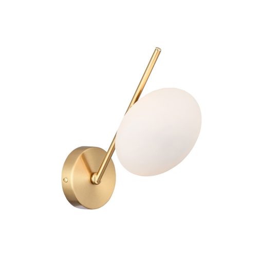 Arany színű fém vázas fali lámpa fehér színű ovális üveg búrával, 1xG9-es foglalattal.