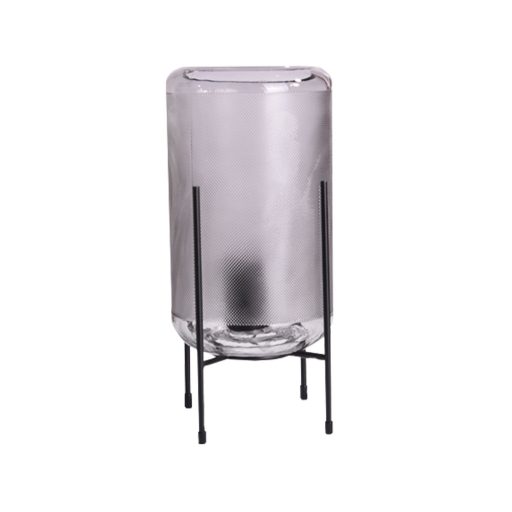 Fekete színű fém vázas asztali lámpa rapcsos, szürke színű üveg búrával, E27-es foglalattal.