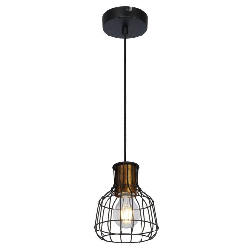 Fekete és sárgaréz színű fém függesztett lámpa E27-es foglalattal.