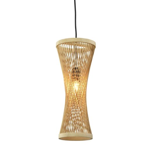 Fém vázas függesztett lámpa bambusz búrával, E27-es foglalattal.