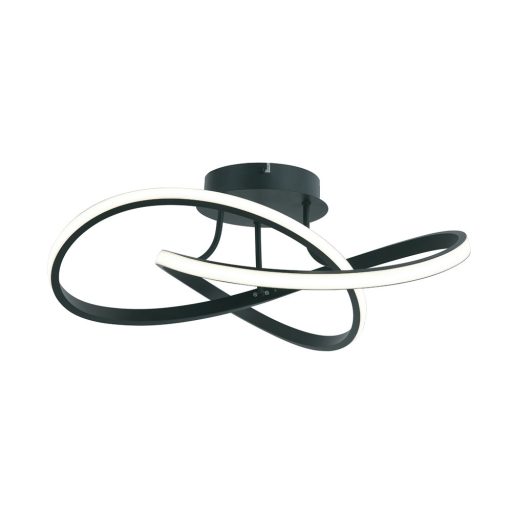 Fekete színű alumínium vázas mennyezeti lámpa fehér színű szilikon betétes búrával, természetes fehér színhőmérsékletű beépített LED fényforrással.
