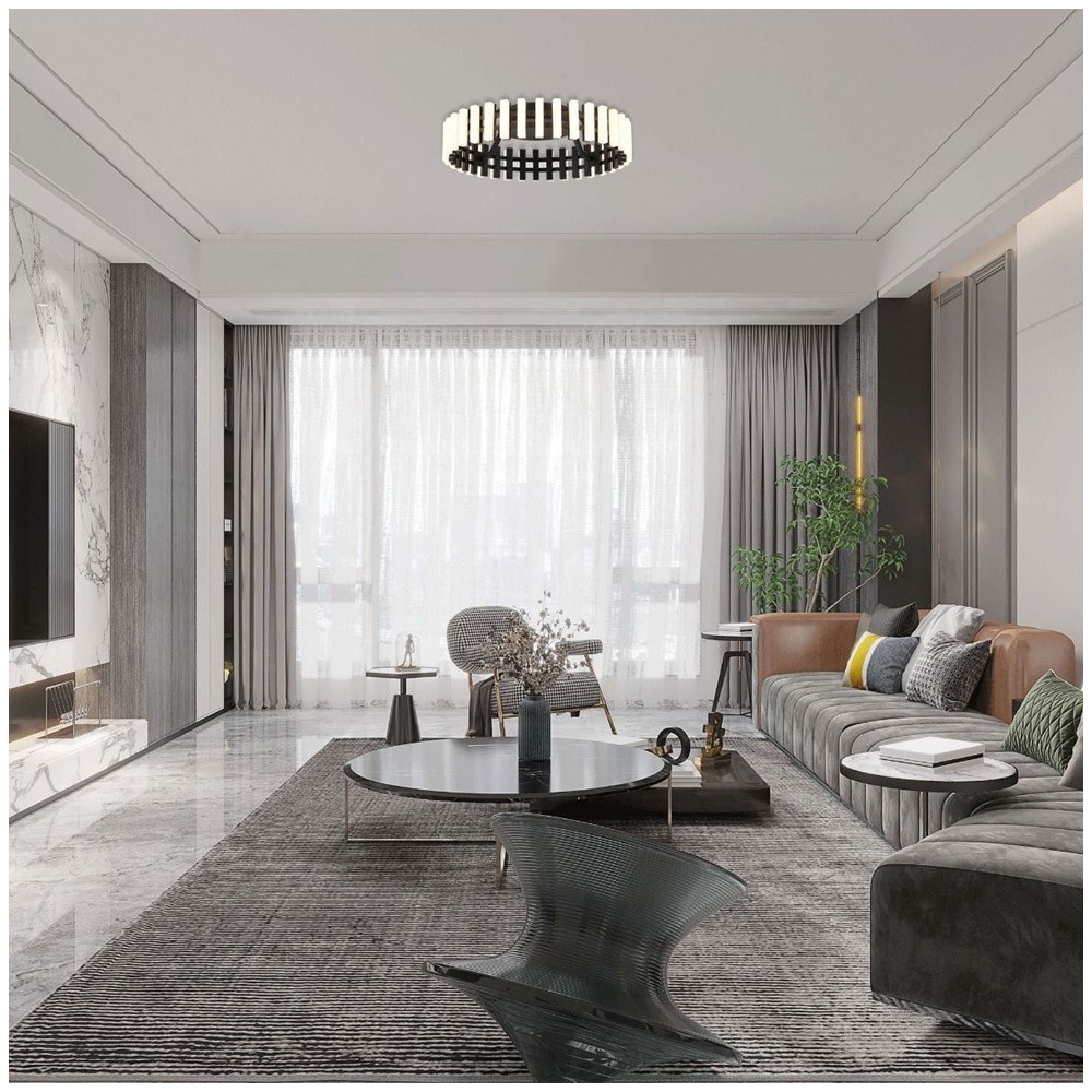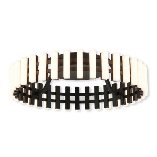 Fekete színű fém mennyezeti lámpa fehér műanyag betétes búrával, természetes fehér színhőmérsékletű beépített LED fényforrással.