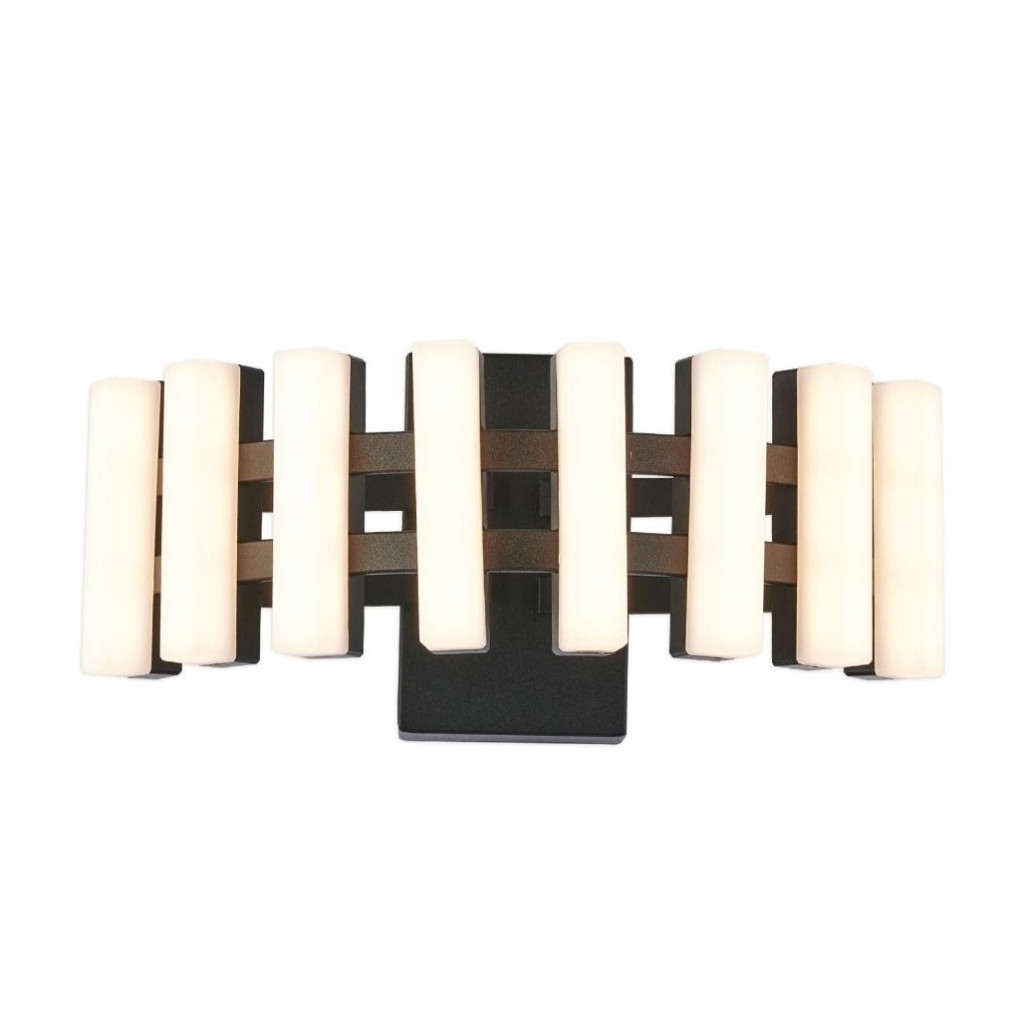 Fekete színű fém fali lámpa fehér műanyag betétes búrával, természetes fehér színhőmérsékletű beépített LED fényforrással.