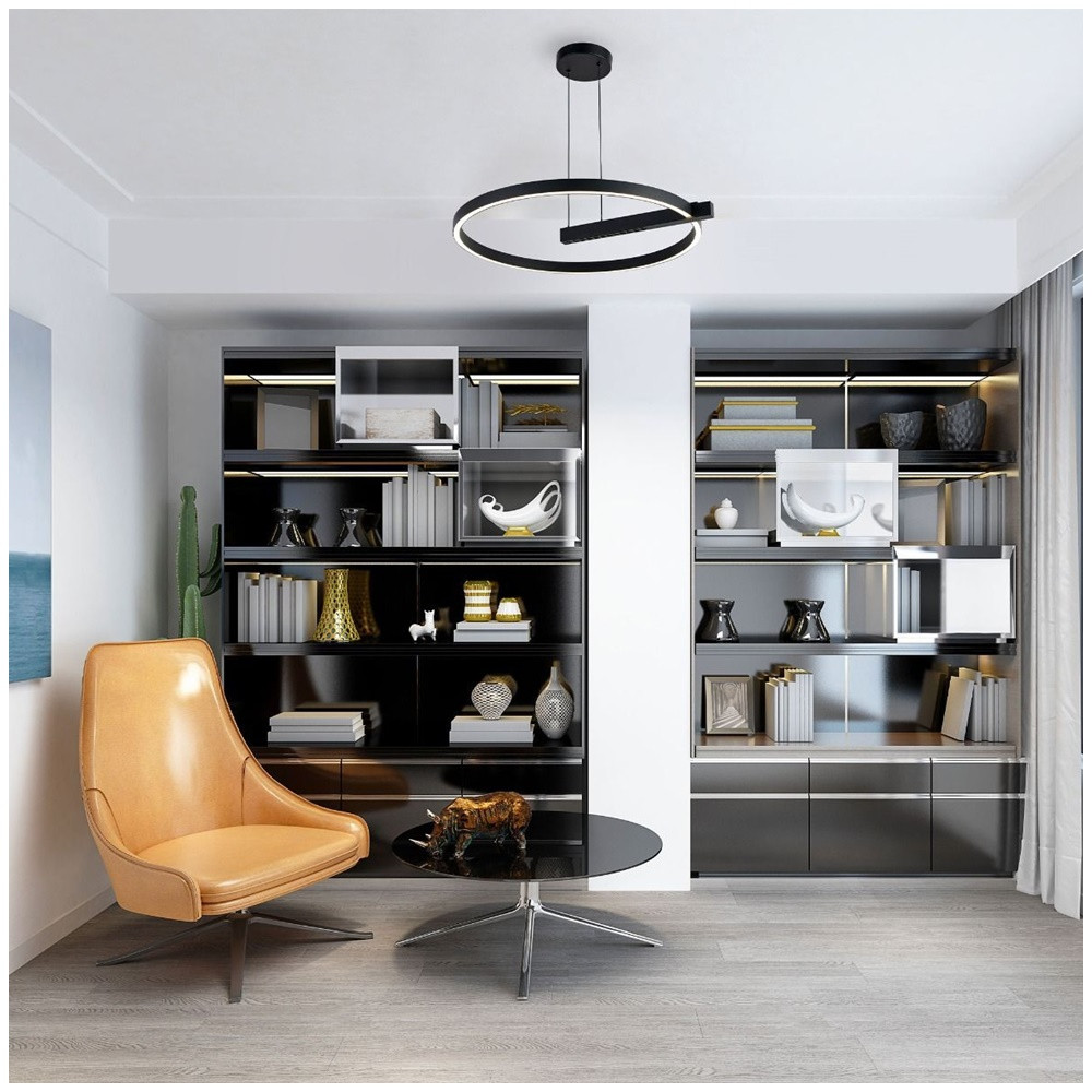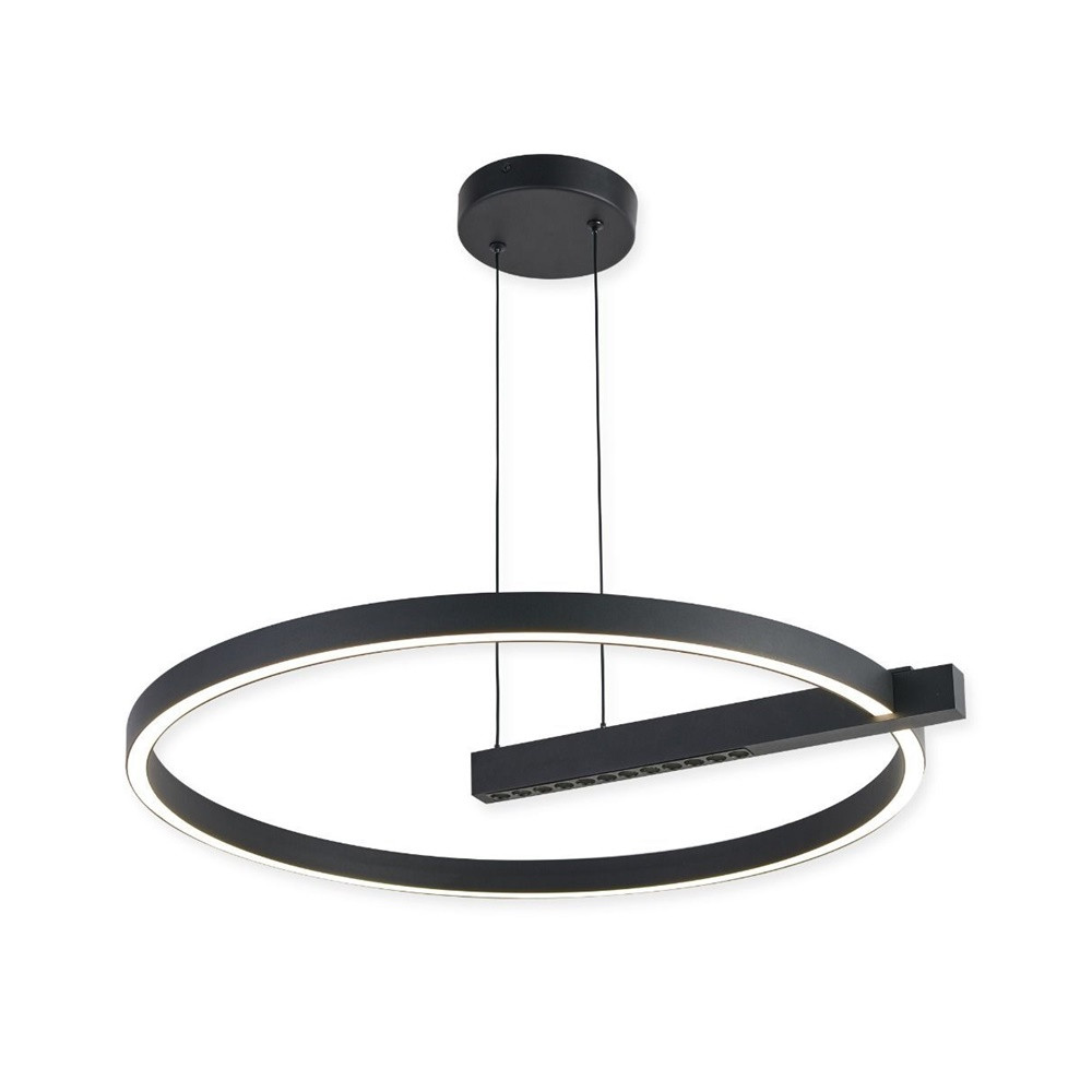 Fekete színű alumínium függesztett lámpa fehér színű műanyag betétes búrával, természetes fehér színhőmérsékletű beépített LED fényforrással.