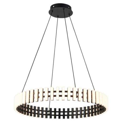 Fekete színű fém függesztett lámpa fehér műanyag betétes búrával, természetes fehér színhőmérsékletű beépített LED fényforrással.