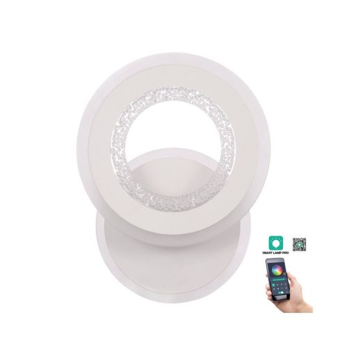 Fehér színű fém fali lámpa acryl keretben elhelyezkedő beépített LED fényforrással. A lámpához távirányító tartozik, mely segítségével állítható a lámpa fényereje és színhőmérséklete 3000/4000/6500K között, illetve éjszakai fény funkció is választható.