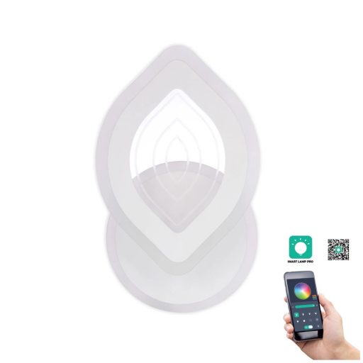 Fehér színű fém fali lámpa acryl keretben elhelyezkedő beépített LED fényforrással. A lámpához távirányító tartozik, mely segítségével állítható a lámpa fényereje és színhőmérséklete 3000/4000/6500K között, illetve éjszakai fény funkció is választható.