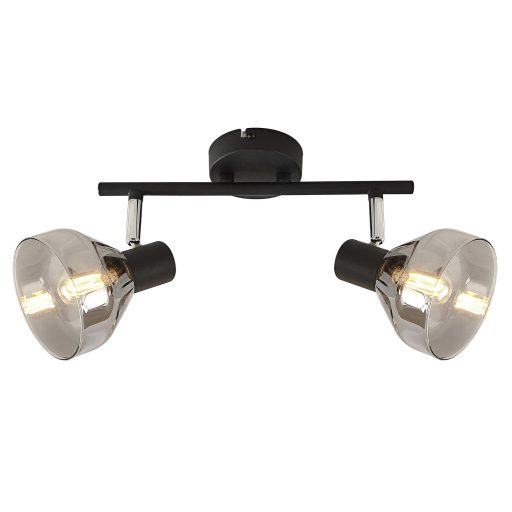 Fekete és króm színű fém spot lámpa füstszínű üveg búrával, billenthető fejjel, E14-es foglalattal.
