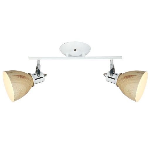 Fehér és fa imitációs fém billenthető fejű spot lámpa E27-es foglalattal.
