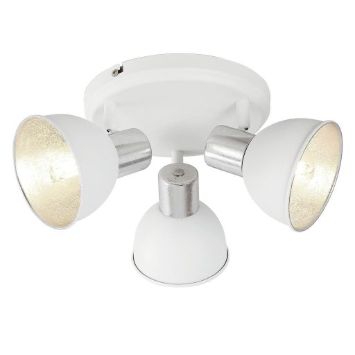 Fehér és ezüst színű fém billenthető fejű spot lámpa E14-es foglalattal.