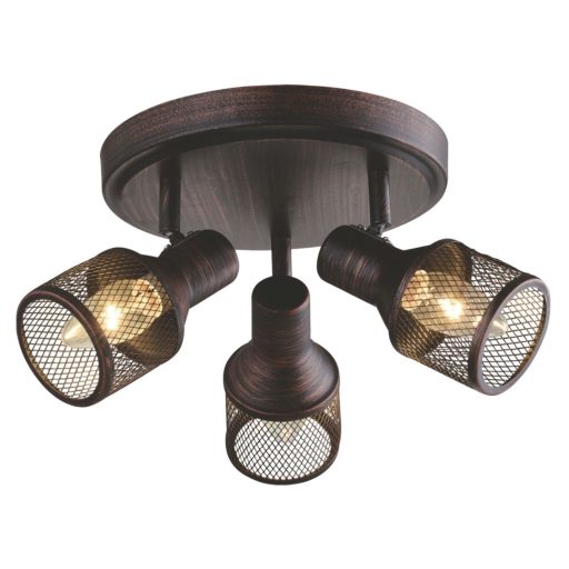 Fekete alapon antik barna patinás fém spot lámpa 3db E14-es foglalattal, állítható fejjel.