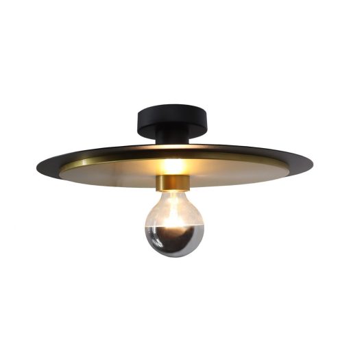 Fekete színű fém vázas mennyezeti lámpa fekete-arany színű búrával, 1db E27-es foglalattal. A lámpa dekor fényforrással, vintage vagy nagygömb fényforrással mutat a legjobban, ami külön vásárolható.