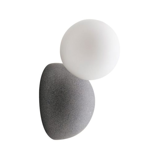 Szürke színű beton vázas fali lámpa fehér színű üveggömb búrával, 1db G9-es foglalattal.