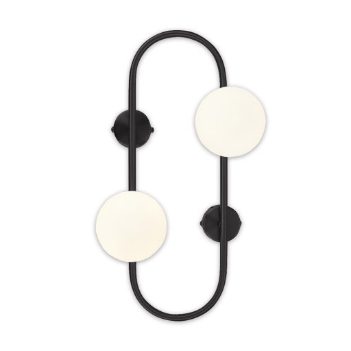 Fekete színű fém vázas fali lámpa fehér színű üveg búrával, 2db G9-es foglalattal.