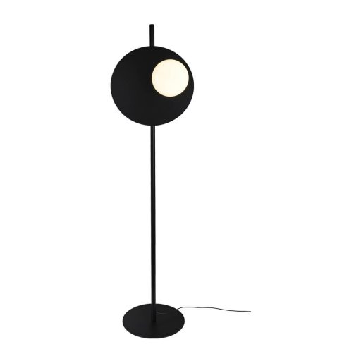 Fekete színű fém álló lámpa fehér színű üveg búrával, természetes fehér színhőmérsékletű beépített LED fényforrással, taposó kapcsolóval.