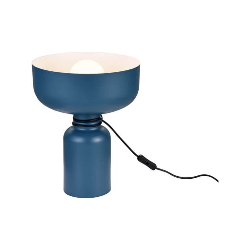 Sötét kék színű fém asztali lámpa 1db E27-es foglalattal, vezetékre szerelt kapcsolóval.
