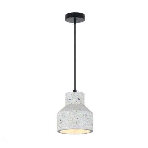 Fém mennyezetrózsás függesztett lámpa fehér színű texturált beton búrával, 1db E24-es foglalattal.