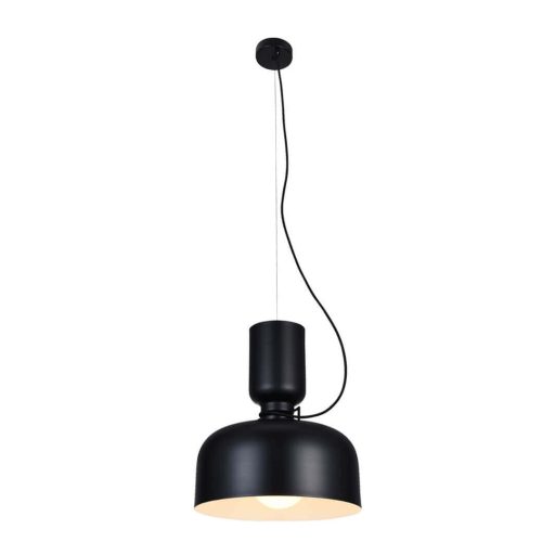 28cm széles fekete színű fém búrás függesztett lámpa 2db E27-es foglalattal. Az egyik foglalat lefelé világít, a második foglalat csak dekorációs céllal felfelé világít.