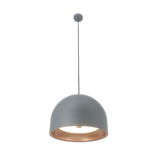 Szürke színű fém függeszett lámpa a búra alján fehér színű műanyag lappal, 3db E27-es foglalattal.