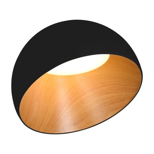 Fekete színű és fa utánzatú fém mennyezeti lámpa fehér műanyag betéttel, természetes fehér színhőmérsékletű beépített LED fényforrással.