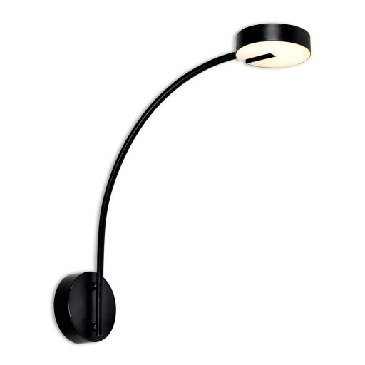 Fekete színű fém fali lámpa fehér acryl betétes, billenthető búrával, meleg fehér színhőmérsékletű beépített LED fényforrással.