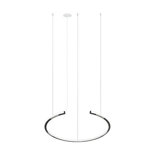 Fehér színű alumínium függesztett lámpa 80cm átérőjű, műanyag betétes búrával, mennyezetbe építhető mennyezet rózsával, természetes fehér színhőmérsékletű beépített LED fényforrással. A lámpa fényereje a búra alatti kézmozdulattal szabályozható.