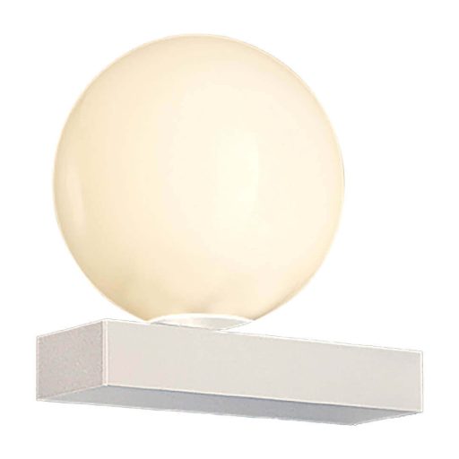 Matt fehér színű fém fali lámpa fehér üveg gömb búrával, 1db G9-es foglalattal, IP44-es védelemmel.
