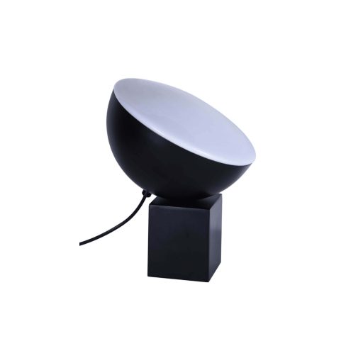 Fekete színű fém vázas asztali lámpa üveg betétes búrával, természetes fehér színhőmérsékletú beépített LED fényforrással, vezetékre szerelt kapcsolóval.