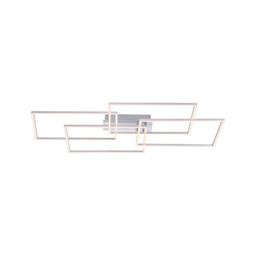 Szögletes formavilágú mennyezeti lámpa beépített LED fényforrással és fali kapcsoló segítségével állítható fényerővel.