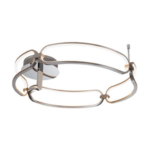 Modern stílusú mennyezeti lámpa, nikkel színű fém vázzal beépített LED fényforrással.