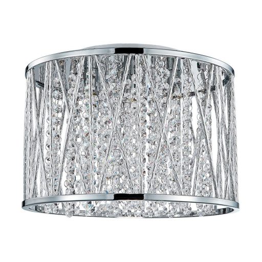 Króm színű fém és alumínium mennyezeti lámpa kristály dekorral.