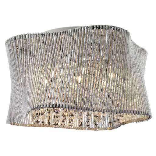 Elegáns megjelenésű mennyezeti lámpa króm színű fém vázzal, alumínum búrával, kristály dekorral.