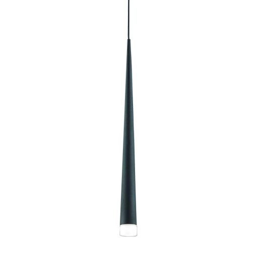 Design függeszték króm színű fém vázzal, feketére festett búrával, a végén fagyott üveg dekorral.