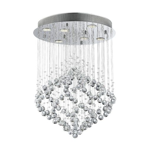 Króm színű fém vázas mennyezeti lámpa kristály dekorral.