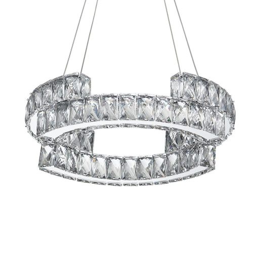 Fényűző megjelenésű króm színű fém vázas függeszték kirstály dekorral és beépített LED fényorrással.