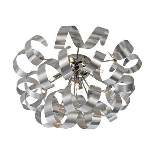 Légies megjelenésű design mennyezeti lámpa alumínium színű fém búrával.