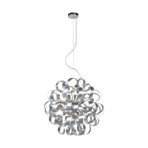 Légies megjelenésű design függeszték alumínium színű fém búrával.