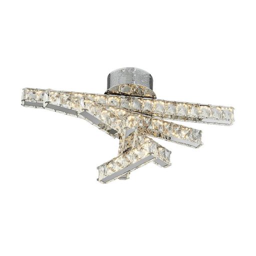 Fényűző megjelenésű króm színű fém vázas mennyezeti lámpa kirstály dekorral, beépített LED fényorrással.