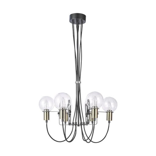 Antik bronz színű fém vázas függeszték gömb alakú, átlátszó üveg búrával.
